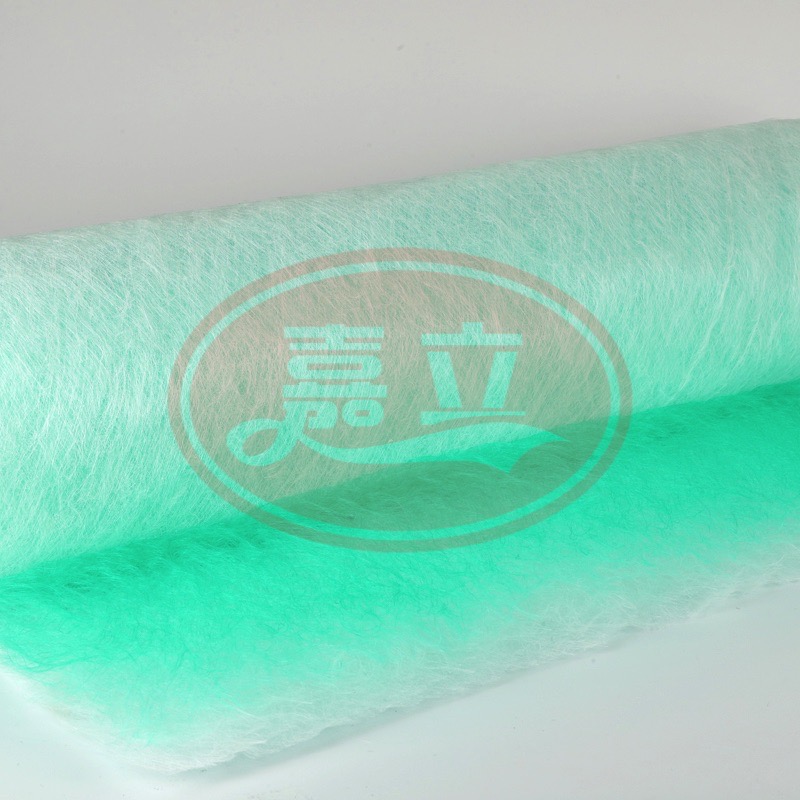 漆雾毡由高强度的连续单丝玻璃纤维组成,呈递增结构,捕捉率高、漆雾隔离效果好;压缩性能好,能保持其外型不变,其过滤纤维利于储存漆雾灰尘;漆雾毡滤料为绿白两色,绿色面为空气迎风面;具弹性、低压损,对漆雾有特佳的捕集效滤,漆雾毡阻燃符合DIN4102 F1耐温度强,可达到相对温度的耐温性; 耐高温达170。C 可切片、成卷供应。
